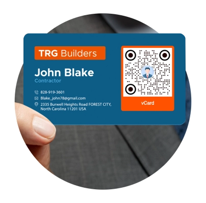 يمكن لرمز الاستجابة السريعة لبطاقة الاتصال الواحدة تخزين الكثير من المعلومات، بما في ذلك اسمك، وظيفتك الحالية، تفاصيل الشركة، العنوان، أرقام الهواتف، email, الموقع الإلكتروني، حسابات وسائل التواصل الاجتماعي، وأكثر! يمكنك أيضًا إضافة صورة عرض احترافية ووصف شخصي.
